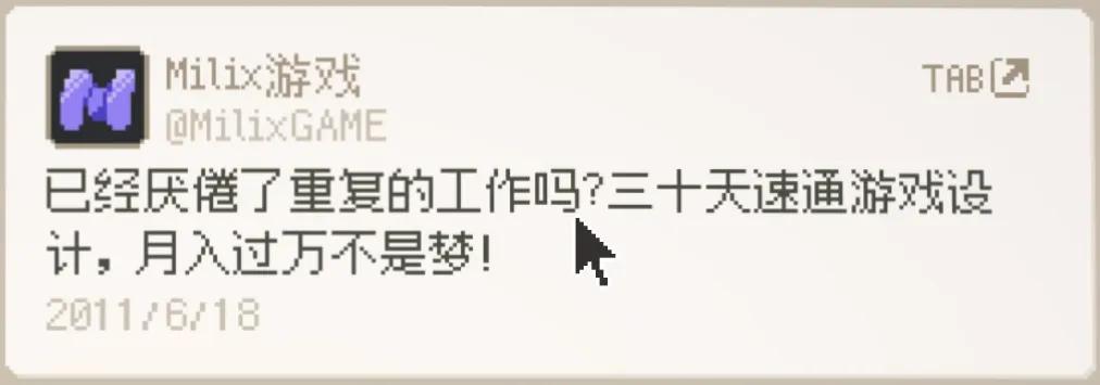 比如在新鮮事(設定類似朋友圈)中,你可以看到Miki有朋友被裁、離開麻園,有人被裁後仍嘗試在麻園找工作,有人在問附近有沒有好的精神病院,有人發出了「30天速通遊戲設計、月入過萬」的廣告……我記得和朋友討論過,一般這種廣告出現,可能意味着兩件事:一,該行業門檻變高、不好賺錢,導致人才溢出;二,外面真的有人很缺錢,纔會被這樣的廣告釣住。