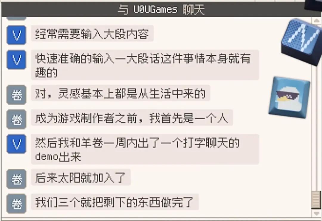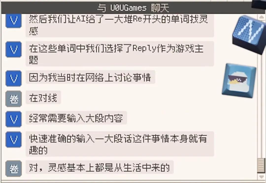 在玩家當網絡替身、回覆消息時,遊戲並沒有直接給ABCD選項讓玩家去點擊,而是需要你真的敲鍵盤。只不過不管你按什麼鍵,敲出來的文字內容是設定好的,按BACKSPACE鍵則可進行內容切換。在一定程度上模仿還原了「敲鍵盤和別人對線」的感覺。
