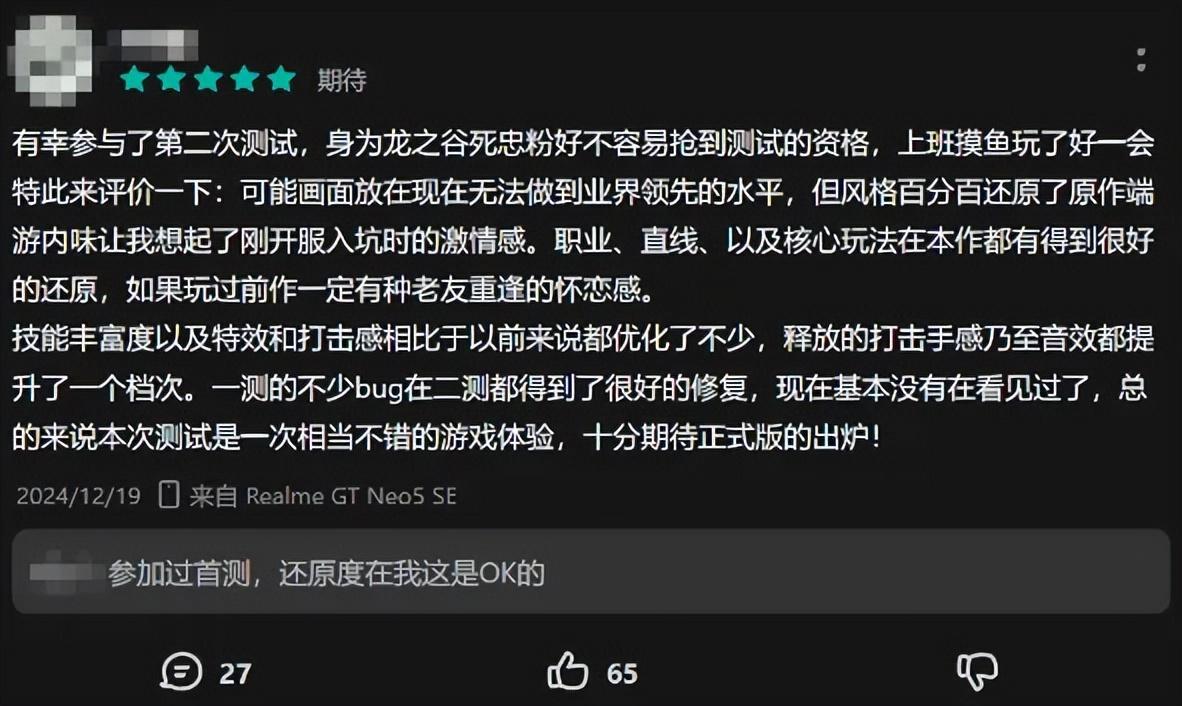 在評論區,有玩家表示,他能感受到《龍之谷世界》對《龍之谷》端遊的高還原度。同時,在對比一測和二測後,他注意到官方確實聽取了玩家的建議,優化了相關的問題,還對戰鬥手感進行了優化。