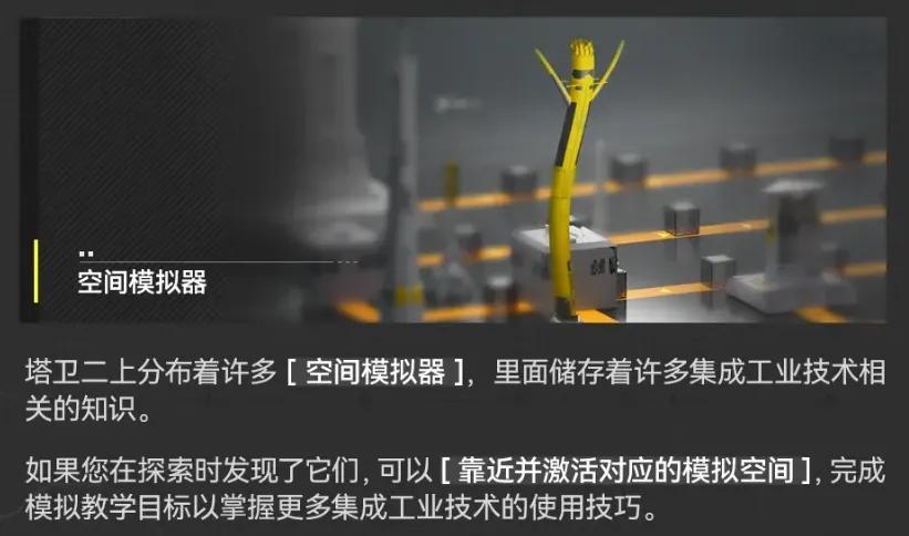 而探索又會反過來強化基建。基礎工業點數的獲取和地圖探索相關聯,作爲鼓勵探索的玩法內容之一,獲取點數後解鎖的空間模擬器同時也是基建教學——玩家需要在地圖上找到它們,並通過對應的模擬關卡。一位基建苦手的葡萄君,說這大幅降低了他的學習門檻。