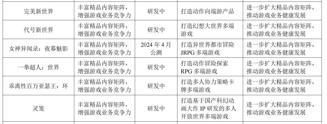 1. 公司在報告期內審慎決定關停項目《完美新世界(Perfect New World)》《靈籠》《代號Lucking》《代號新世界》等,並相應進行人員優化,合計虧損約4億元。