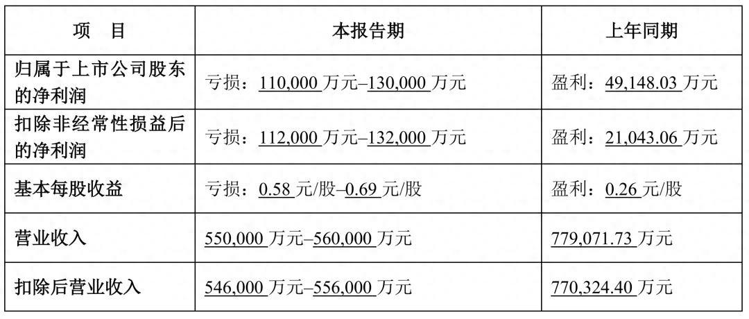 報告顯示,公司本年度歸母淨利潤預計虧損11億-13億元,同比轉盈爲虧;收入預計爲55億-56億元,同比有所下滑。