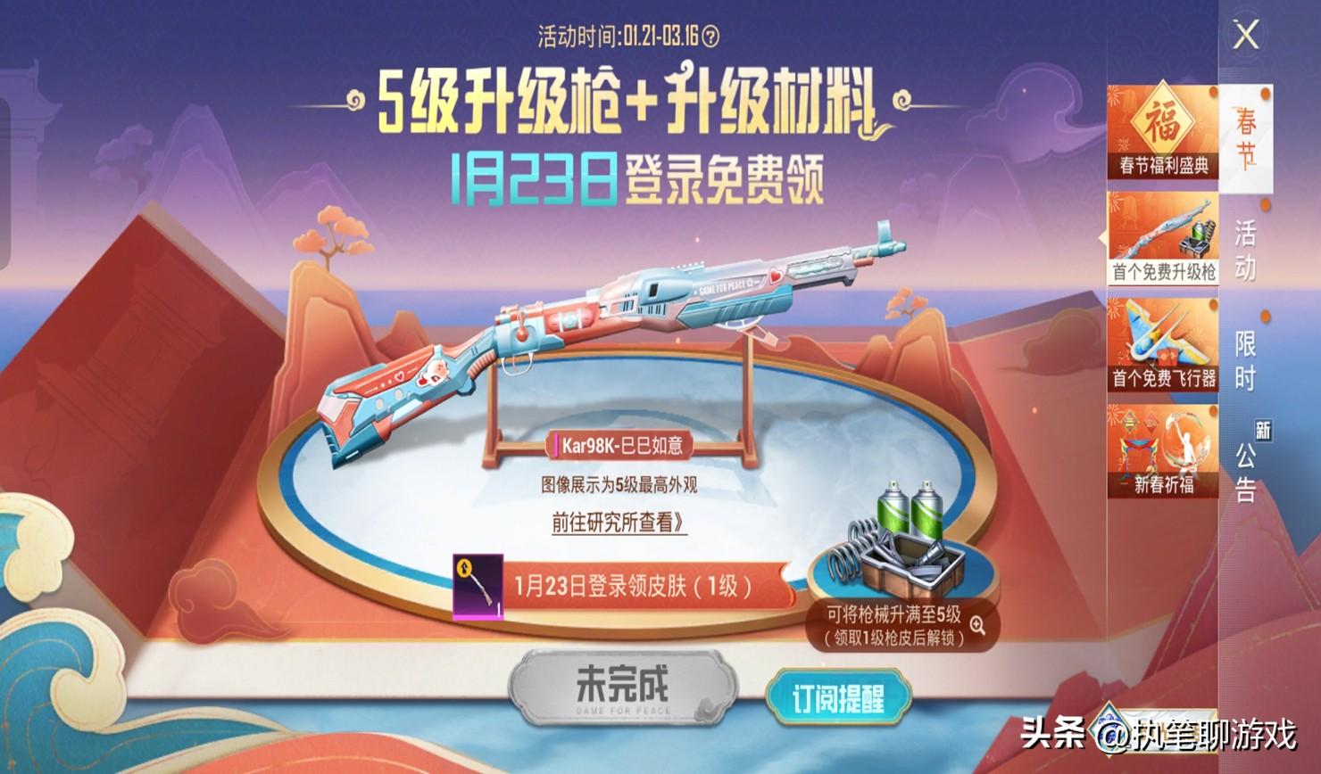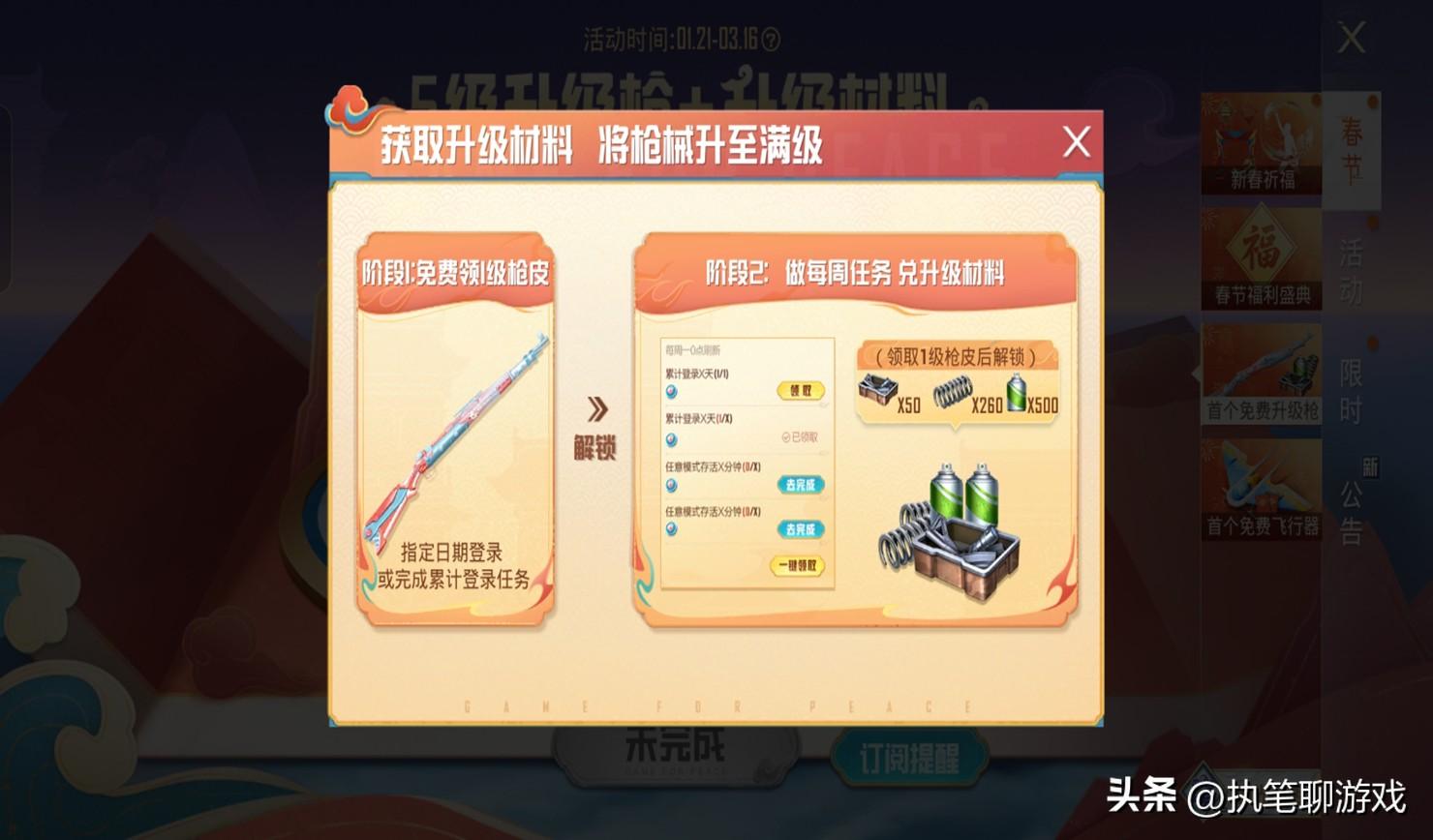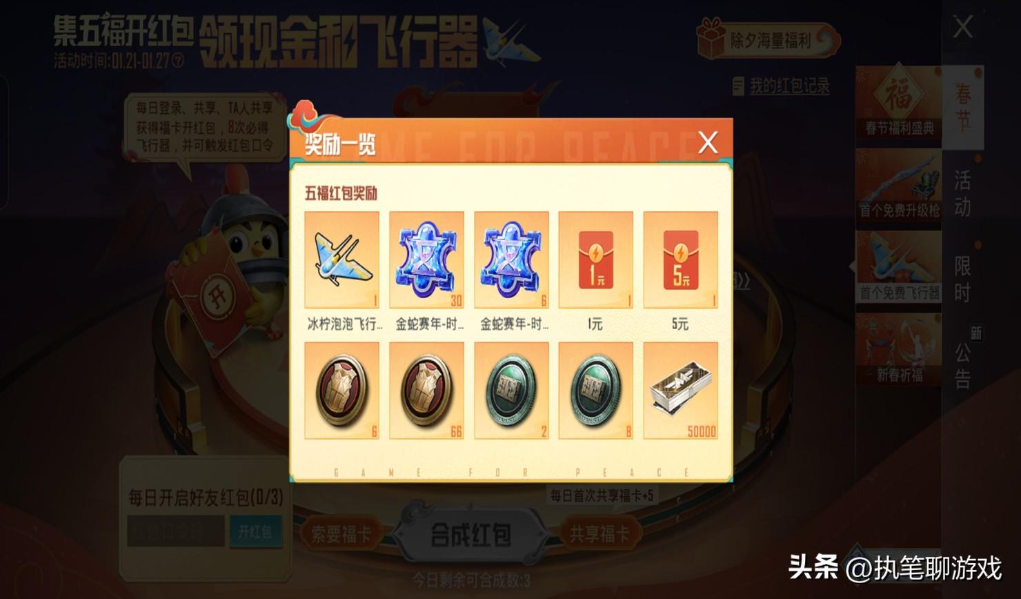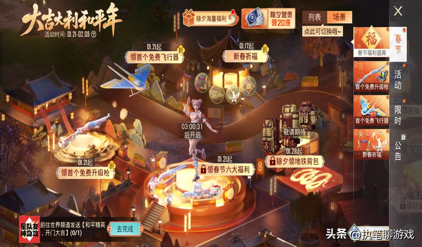 如圖所示,目前的“大吉大利和平年”新春福利盛典已經正式開啓了,套裝、揹包、頭盔、槍皮算是情理之中,畢竟春節這麼大的節點,還是像往常那樣“真·摳門”,就實在是說不過去了。
