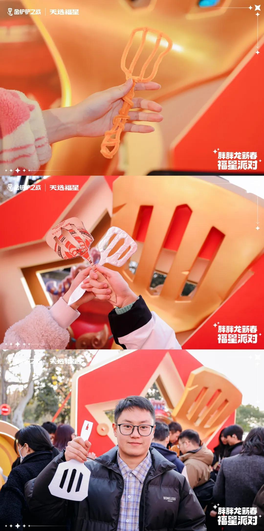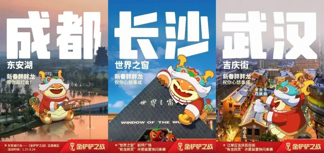 去年官方選用胖胖龍爲龍年福星嚮導,在全國多個城市的標誌景點接待遊客。人們在春節走出戶外,很容易就能捕捉到《金剷剷之戰》元素。