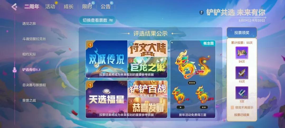 相關的例子實在太多了。《金剷剷之戰》逐步確定了主賽季穩定更新,雙賽季並行,娛樂玩法穿插的打法,以此滿足玩家對新鮮感的渴望,避免遊戲內容消耗殆盡後,出現長草期。同時,它也能填補玩家對經典賽季的懷念之情。在和葉菁的對話中,她提到,《金剷剷之戰》是賽季制,而每次賽季更新,對於項目組來說,都會當成一個新品來發布。