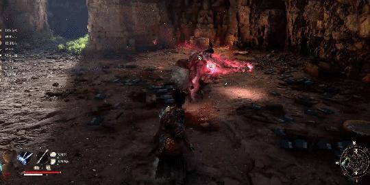 具體來說,遊戲目前劃分了斧頭、長槍、雙刀等五種基本武器流派,每個流派下又包含多個不同特性的武器,以長槍爲例,有的純粹近戰,有的可轉變爲遠程武器。此外,武器和流派都有單獨的戰鬥技能,如斧流派中期可點出旋風斬派生招式,通過特定指令觸發打出高額傷害。