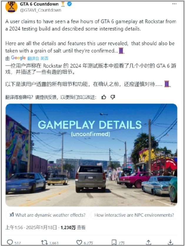 該用戶還爆料稱,《GTA6》將會模擬真實的交通系統,包括動態交通體系和交通事故等,發生重大事故將會出現嚴重的堵車現象,以及玩家可以在農場等地騎馬。