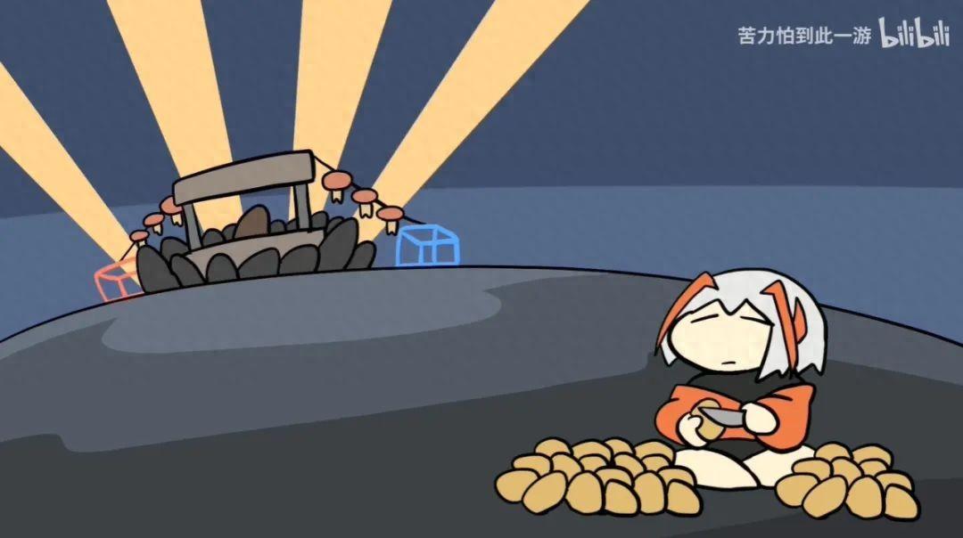 剛纔我們說的“高達”味十足的節目裏,也還有片段會讓人瞬間魂穿到《機甲核心6》。而在以方舟肉鴿故事爲背景的節目《熔爐旅拍記》裏,你會看到一閃而過的肉鴿神作《以撒的復仇》,以及一張魔改的《伏爾加河上的縴夫》。