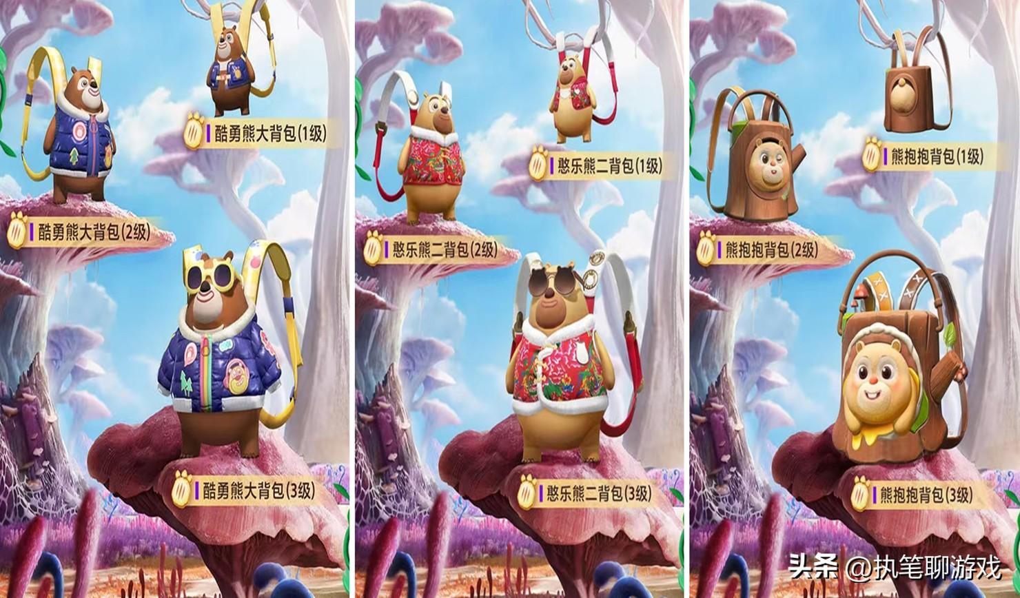 前文提到,《和平精英》裏的“熊出沒”屬於“直兌”,在皮膚類型以及數量方面也因此出現了很多變化,比如沒有槍皮、頭盔、降落傘等,而是出現了3個系列揹包。