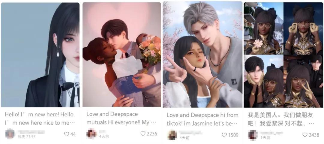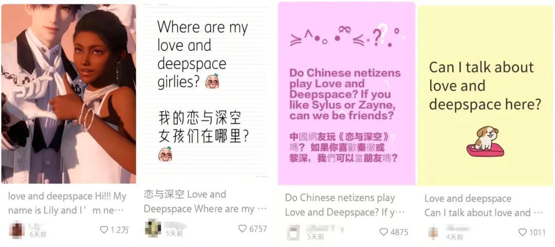 可別以爲這樣的成績是海外華人衝上去的——多逛逛國內外社媒,不難發現,外國玩家是真喜歡它。比如前幾天海外TikTok用戶衝進小紅書後,我就刷到了大量《戀與深空》海外玩家,找國人玩家同好、分享二創的帖子。