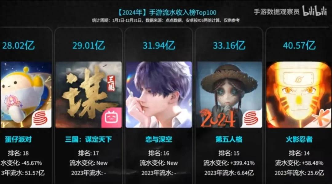 這兩天,葡萄君刷到不少總結2024國區手遊成績的視頻。只看2024上線的新遊,你會發現,在SLG、MMO等大DAU產品的前後夾擊下,《戀與深空》這款主打內容向,在很多人眼中屬於小衆賽道的乙遊,竟衝到了榜單前列。