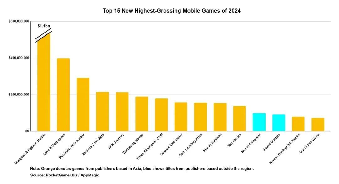 跳出國區、放眼全球,它可能比大家預想的還要能打。外媒PocketGamer.biz總結了2024全球手遊新品流水榜單,《戀與深空》位居第二。與之對應,據Sensor Tower,疊紙2024年全球收入同比增長660%,達到2019至年2023年的收入之和,《戀與深空》無疑是推動要素之一。另據今天遊戲官方報道,《戀與深空》全球用戶數已突破5000萬。