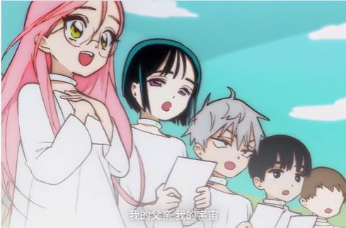 吟唱歌謠的兩位女孩,躍過時間的罅隙,攜手站在遼闊的宇宙舞臺上。畫面配合着音樂不斷閃回,過往兩人在音樂學校的幸福回憶,如同走馬燈一樣掠過觀衆眼前。