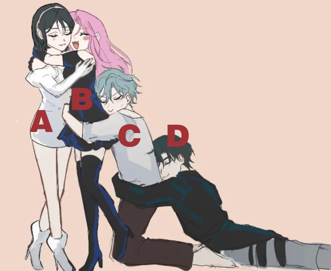 故事中的四位角色SUA(A)、MIZI(B)、Till(C)、Ivan(D)彼此間存在着一段她愛她、他愛她、他愛他的情感線。