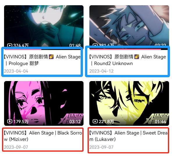 於是,愈來愈多和我一樣受宣傳蠱惑的圈外人,在好奇心的驅使下,試探着點進了最初那個標註着【Alien Stage| Round 1】的視頻,那個被我們誤以爲只是個百合向的小短片……