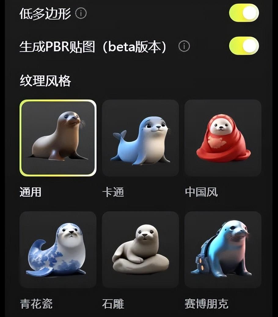 再比如用戶可以選擇不同紋理風格。混元3D還同時支持PBR貼圖,可以通過模擬物理特性生成更具真實感的材質貼圖效果。