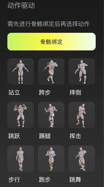 其中,最令我注意的還是3D動畫生成。無論是用戶用混元3D製作的模型,還是本地上傳的模型,它都可以自主進行骨骼綁定,並按照預設的多種常用動作模板運動。對於遊戲開發和動畫製作而言,這個功能或許能節省不少時間。
