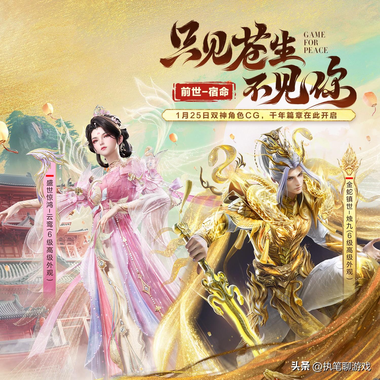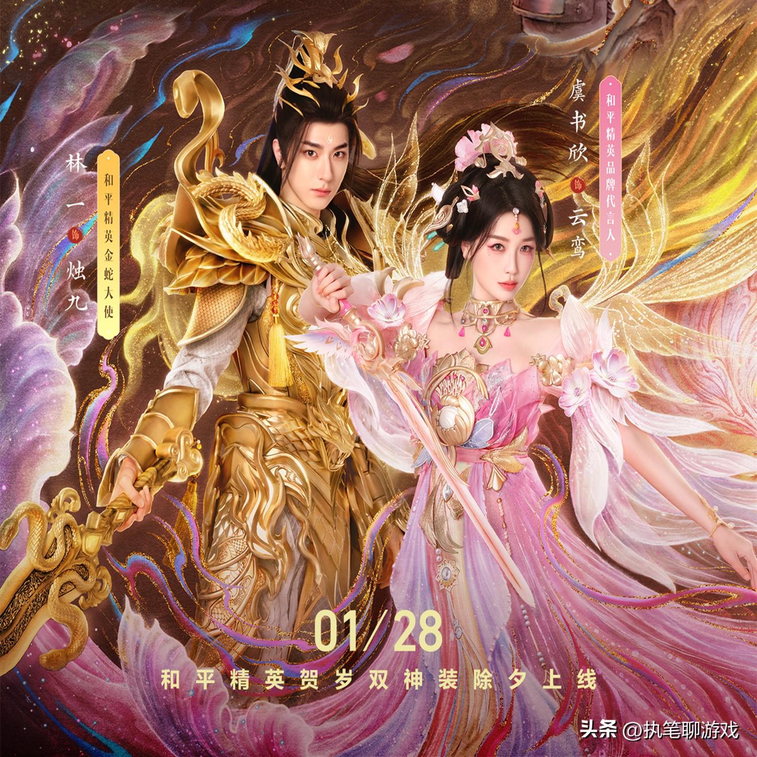 首先我們來看“真人版”的海報,由林一Cos金蛇鎮世燭九、虞書欣Cos盛世驚鴻雲鸞,前者被光子稱爲《和平精英》第一套“至尊金裝”,後者則是被光子稱爲《和平精英》第一套“可形變神裝”。