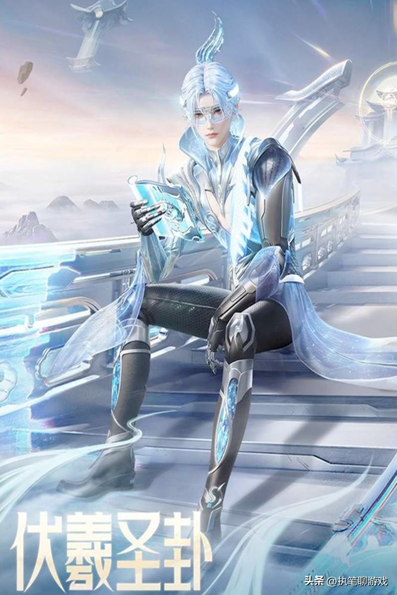 我們繼續來看“伏羲聖卦”,帥氣的形象讓人眼前一亮,銀白色得長髮也是相當酷炫,背後還出現了卦象圖騰。以天哥的遊戲審美來看的話,這個男角色明顯要比前文提到的“玄冥寒域”要更好看一些。