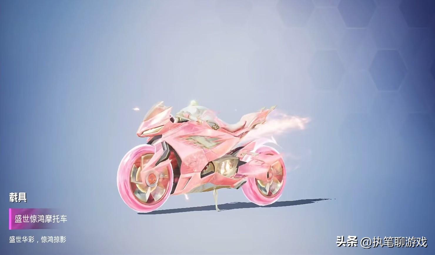 首先來說摩托車,這種粉色在《和平精英》裏綽號“猛男粉”,無論是男玩家還是女玩家,都比較偏愛此類顏色,再加上特效表現,人氣之高自然是毋庸置疑了。