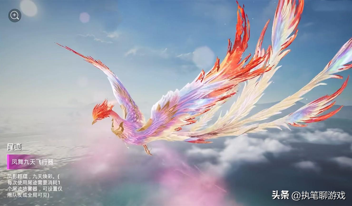 最後的火鳳凰是讓天哥最意外的,也是之前完全沒有想象到,飛行器可以做成這種模樣,從飛機上跳傘後的一瞬間直接“變身”,從人物角色變成鳳凰在空中翱翔,這種創意在《和平精英》中還是第一例。