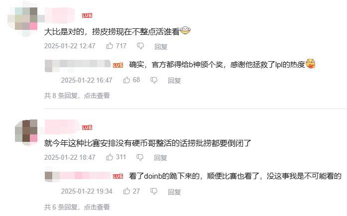 從數據上也能佐證這點。截至目前,NIP vs iG的第一段賽段比賽錄像在B站有200萬的播放,遠超2025年LPL的所有其他比賽。這一方面是因爲比賽本身的噱頭十足,一邊是iG全神班正賽首秀,另一邊是Doinb臨陣復出,最終NIP爆冷擊敗了iG,雙方也打出了些血性。