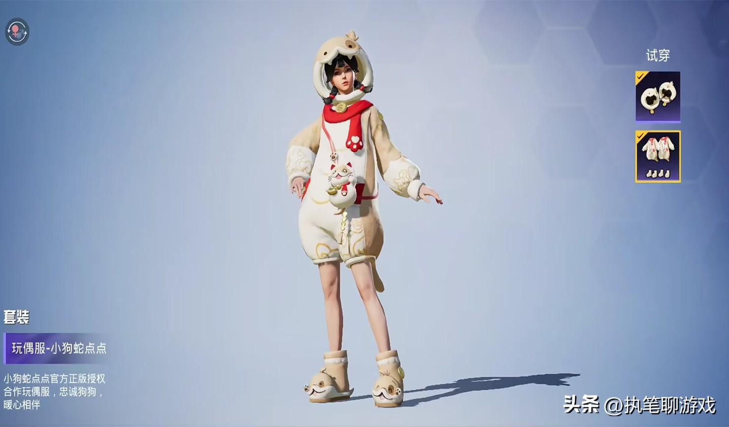 以遊戲審美的眼光來看的話,天哥覺得“小狗蛇點點”走的是可愛路線,人偶服的版型設定又萌又可愛,應該會得到一些玩家的青睞。