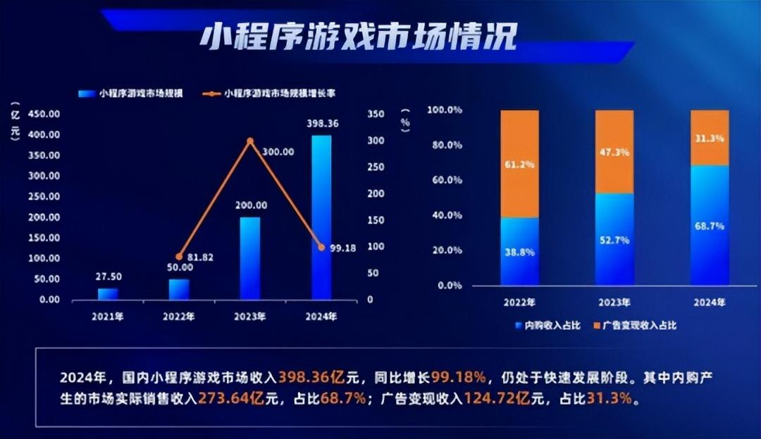 根據相關數據來看,小遊戲品類整體市場規模接近400億元,同比增長99%。