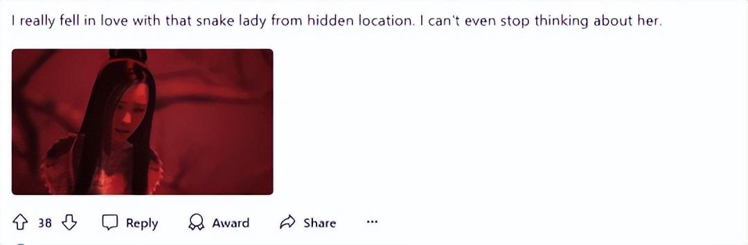 而在遊戲上線後,蛇女紅依更是引起了一陣波瀾,老外對紅依是一片盛讚。更有老外直言“我真的愛上了這個蛇女(紅依),我腦子裏已經全是她了。”