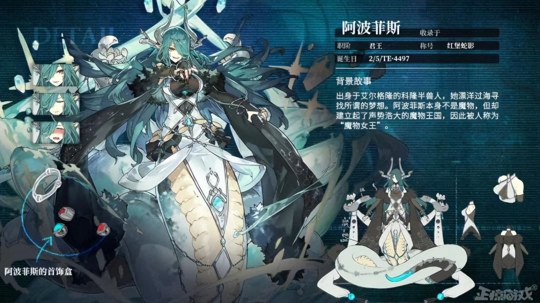 蛇女阿波菲斯在遊戲裏的設定是女魔王,身長3米多,體重152kg,雖然四星的她戰鬥力一般,但是入手難度低,加上蛇身長大粗壯,異常肥美,因此深獲蛇女愛好者的喜愛。