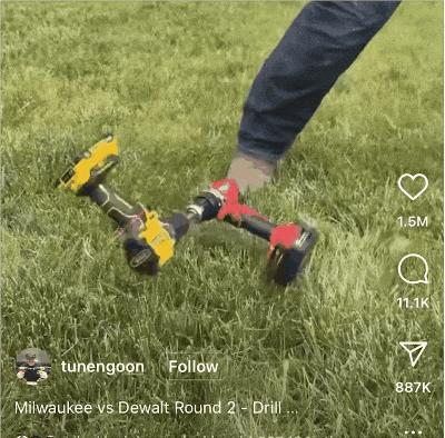 這奇怪比賽的起因,是最近的TikTok上,突然出現了一批用兩個電鑽對戰的視頻。大家把兩個高級的手持無線電鑽,面對面用粗金屬棍連在一起,然後讓它們分別以相反方向,全力開動,見證誰先被甩壞。