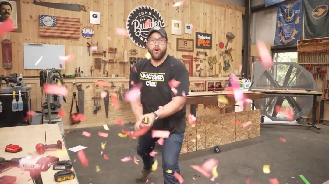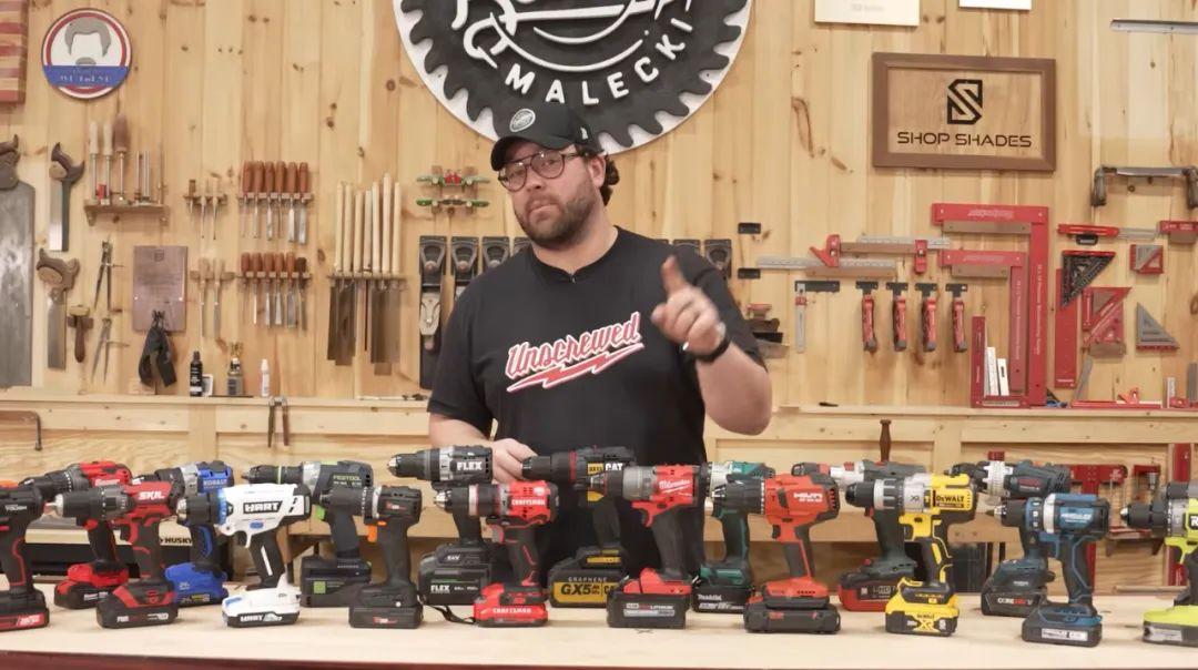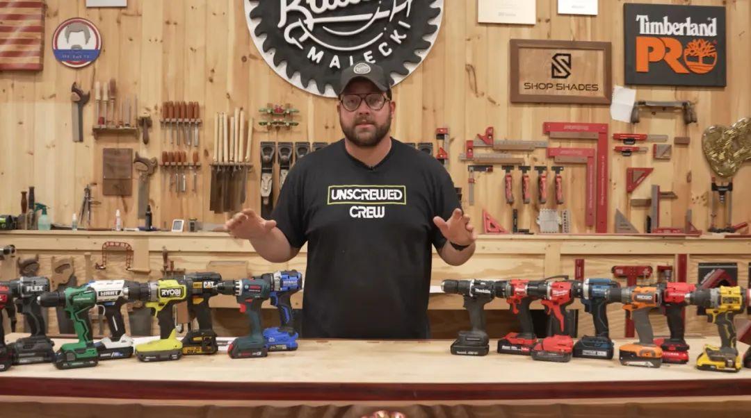 這個頻道日常就在測評各種手工工具,這些電鑽對他們來說都是常客。他們先在手工屋裏打掃出一片空地,然後把四周做好防護措施,以防發瘋的電鑽蹦起來,讓節目出現在《某種物質》的推薦欄中。