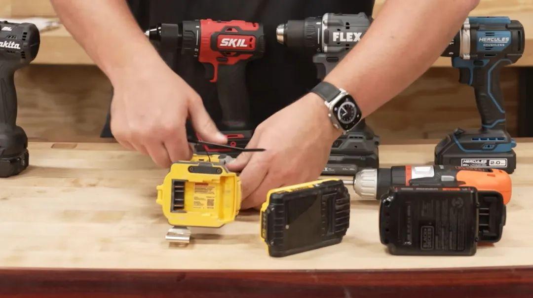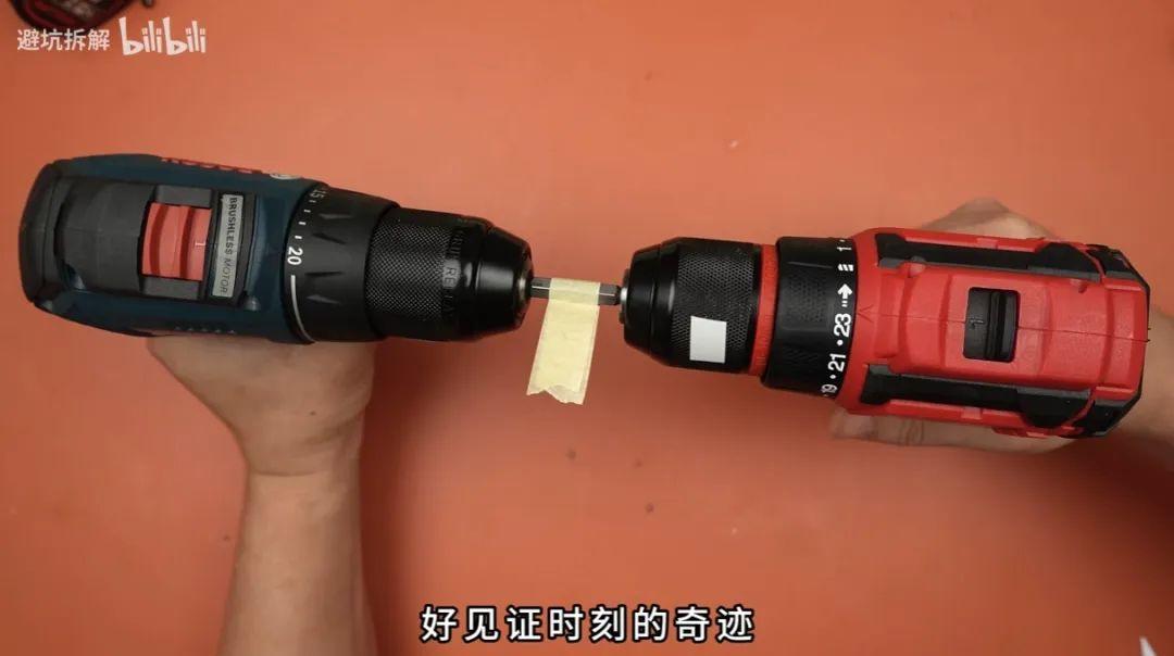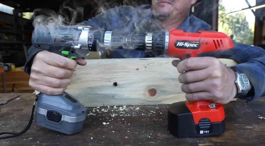 此外,電鑽的電池,也是個重要因素。B站有UP主@避坑拆解曾讓99元的國產電鑽,和800塊的博世電鑽比扭力,結果國產的贏了,因爲它用的電池是18V,而博世則是12V。