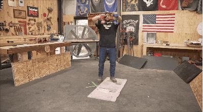 這是非常燃的場面,因爲滾滾濃煙會從發燙的電鑽縫隙中冒出,讓博主必須戴面具操作。而且這項運動是有傷亡的,因爲那兩塊固定的木頭,在燃燒的戰士之魂前並無卵用,有時Wranglerstar會一瞬間分心,沒能控制住電鑽的扭力,手腕差點給擰成麻花。