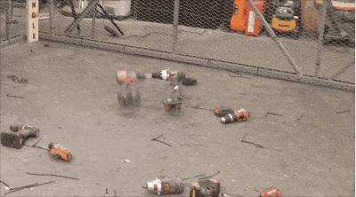 這樣看起來,好像許多電鑽都是被砸壞的。實則不然,因爲JMU還加上了高速攝影回放,讓你仔細看清比賽過程。結果許多電鑽真是在半空中,就被對方扭斷了頭,堪稱武林高手般的對決,勝負就在一瞬間。