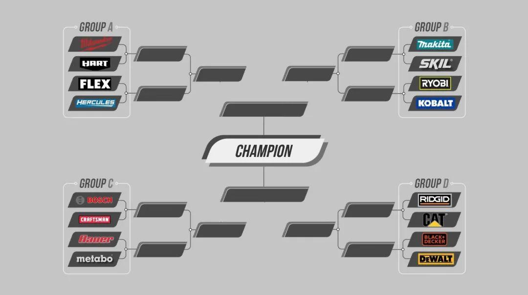 爲了滿足各種機械控變態的嗜血慾望,JMU選出了16把最好的電鑽,價格換算成人民幣,從數百元到上千元不等。這16把電鑽又被分成了4小組,會經過四輪廝殺後,選出冠軍。
