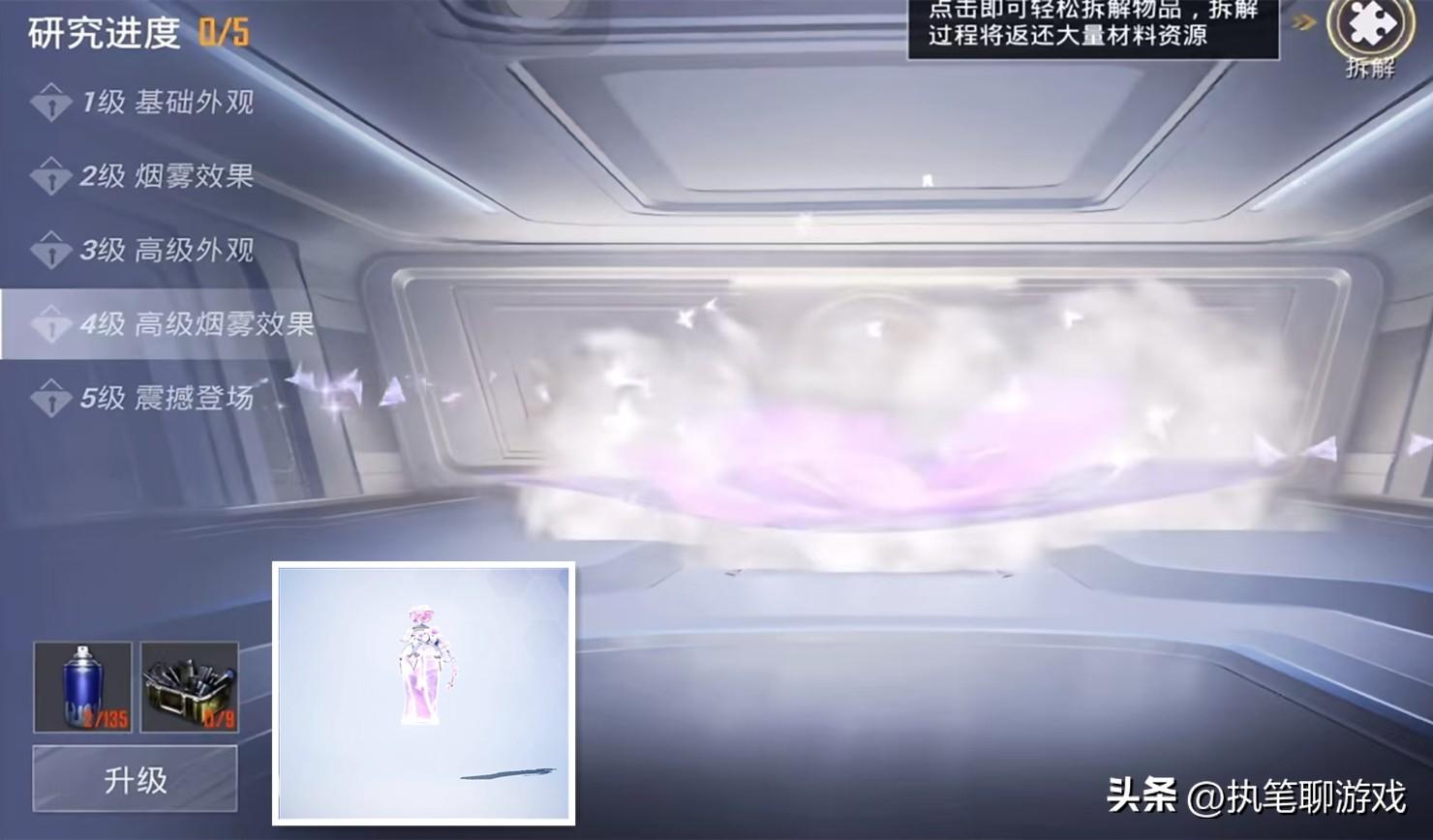 接下來則是5級煙霧彈,擁有基礎外觀、煙霧效果、高級外觀、高級煙霧效果、震撼登場的等級特效。