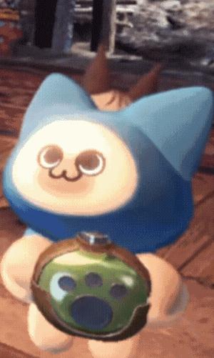 艾露貓經常會在狩獵時中整出些岔子,我日奔跑的時候平地摔,放壺爆彈的時候被炸得灰頭土臉,如果CD對的不是很好,甚至會對你重拳出擊。