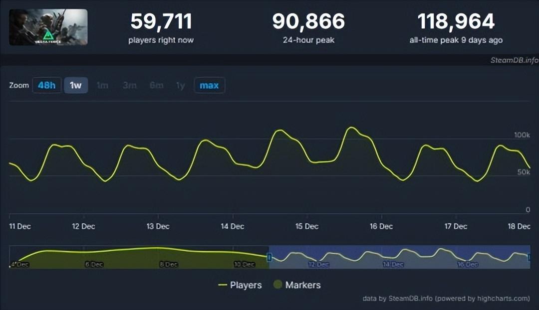 遊戲僅用了4個小時便成功登頂Steam暢銷榜,開服不到兩週全球註冊玩家超過2000萬,一天就40萬玩家同時在線,並且在第一賽季上線後突破到60萬+同時在線。
