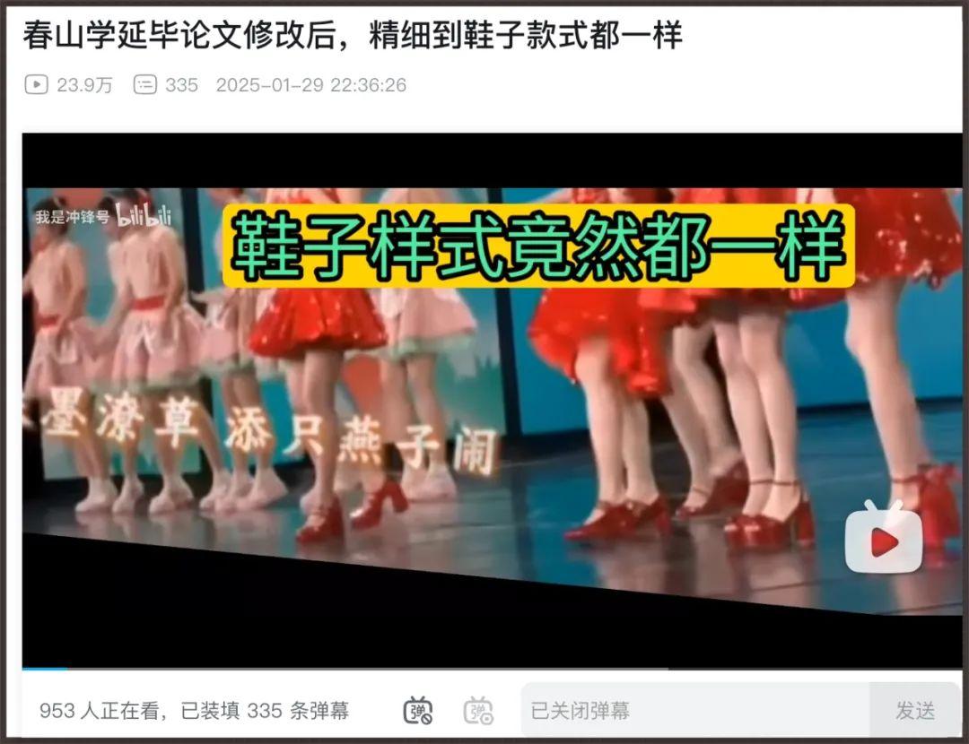 有意思的是,去年B站網友們大搞春山學,今年小姐姐們都是同樣的紅衣裳,舞臺還是自動升降的。我本以爲,春山學的延畢論文要遭重了。