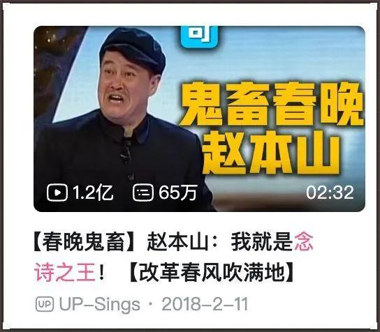 再往前看,一首鬼畜調音的《唸詩之王》,更是讓B站年輕人以無比抽象的方式完成了蒸汽波的本土化,“改革春風春滿地”採樣的正是趙本山那些年的春晚小品臺詞。