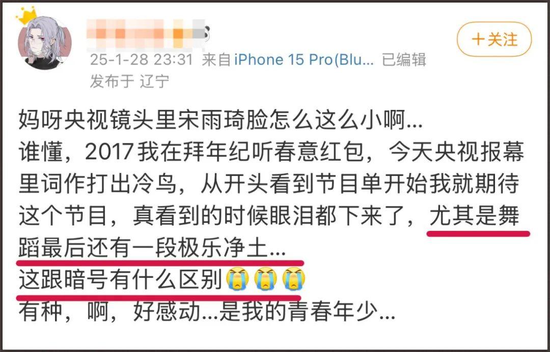 正在新觀衆直呼“過年就要看紅紅火火的甜妹子唱唱跳跳”的時候,老二次元已經開始對上暗號了,原來臺上的舞蹈有一段刻意融入了《極樂淨土》的蝴蝶步。
