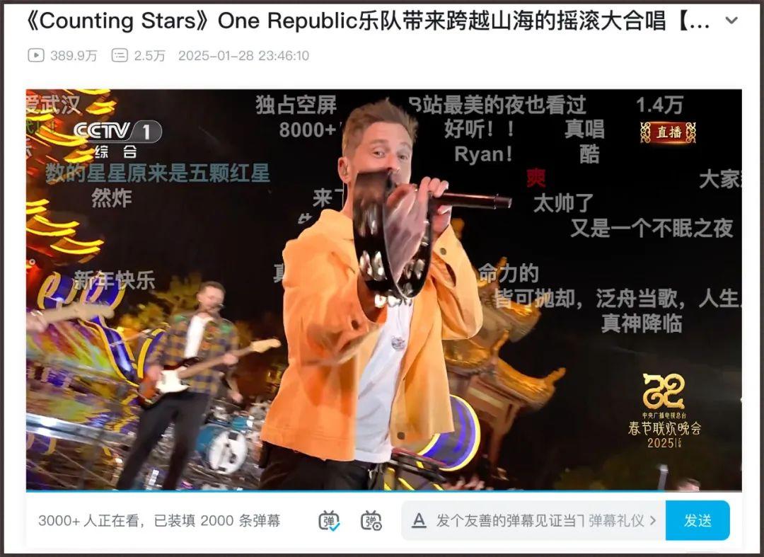 印象裏,這應該是第一次美國本土樂隊在全國人民最大的歡慶節目上表演吧?不得不說是一次里程碑式的嘗試,而之前OneRepublic就已經先出現在今年B站的跨年晚會上了。這個新年對於觀衆而言,是一場關於“數星星”的call back。