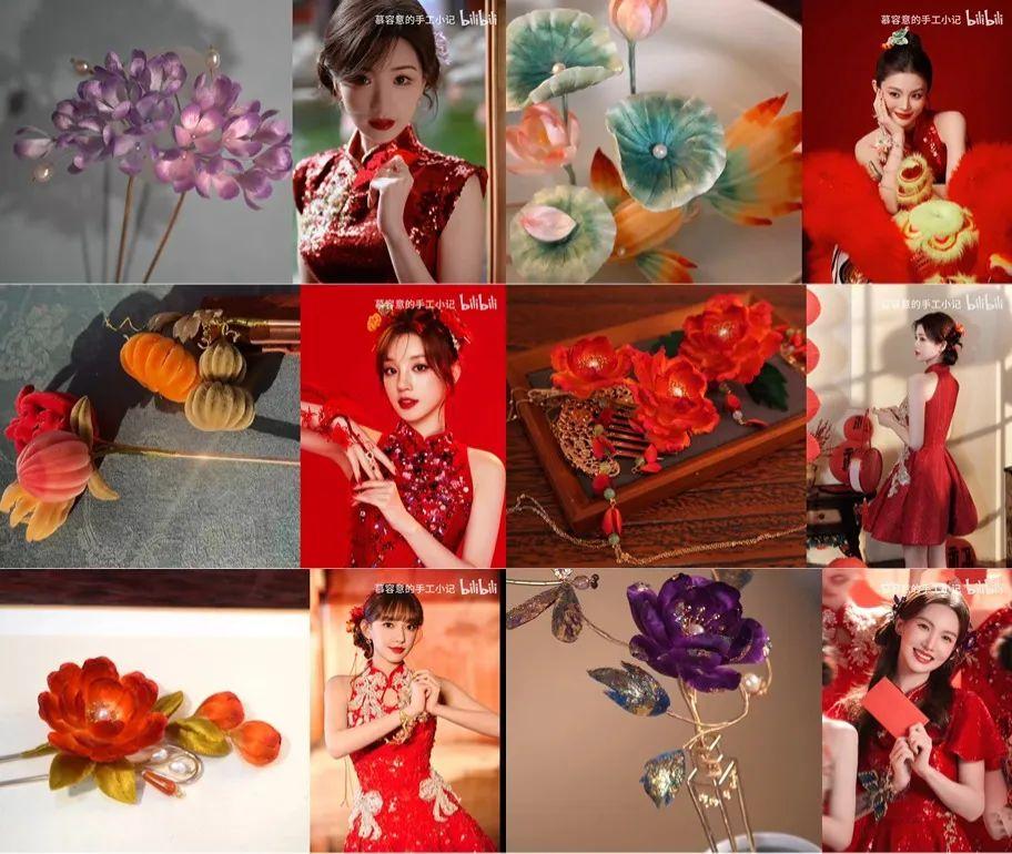 另一位00後UP主「慕容意的手工小記」一手包辦了這次春晚《春意紅包》的髮飾部分,她最擅長的就是設計製作精美絕倫的“非遺”絨花頭飾。