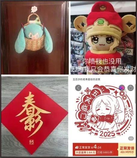 從出生開始就無縫銜接網絡的新一代年輕人,有着自己過年的方式。對他們來說,年味可以是一個拿來當門神的二次元娃娃,可能是一幅寫着“春日影”的Mygo春聯。