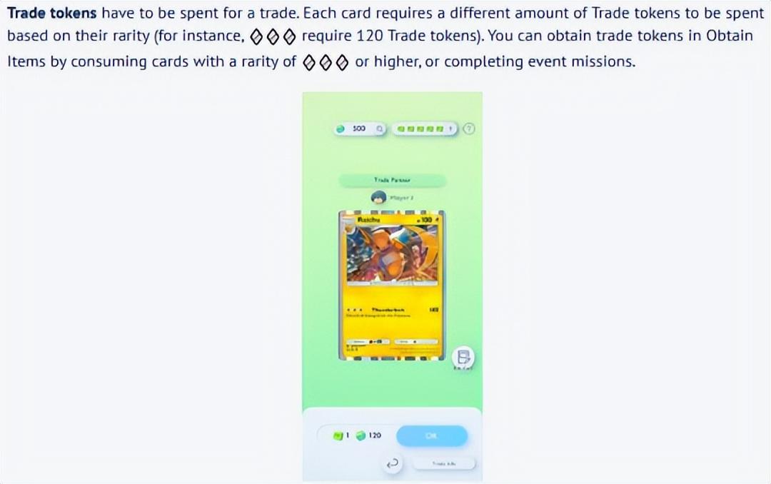 另外,卡牌交換隻能交換相同稀有度的卡牌,高稀有度的卡牌需要消耗“交換代幣”,而代幣可以通過“獲得道具”來消耗稀有度爲3菱星以上的卡牌或是完成活動任務來獲得。此外交換還需要“交換力”,這是一種類似於“得卡挑戰”中“挑戰力”的機制,可隨着時間恢復或消耗金幣和沙漏這樣的道具來恢復。