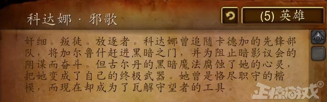 小弟有話說:說實話,科達娜除了突襲守望者地窟跟參與破碎海灘之戰外,並沒有犯過什麼罪大惡極的事情,如果按照暴雪一貫的作風,早就把她給拎出來洗白,與卡德加湊CP了。