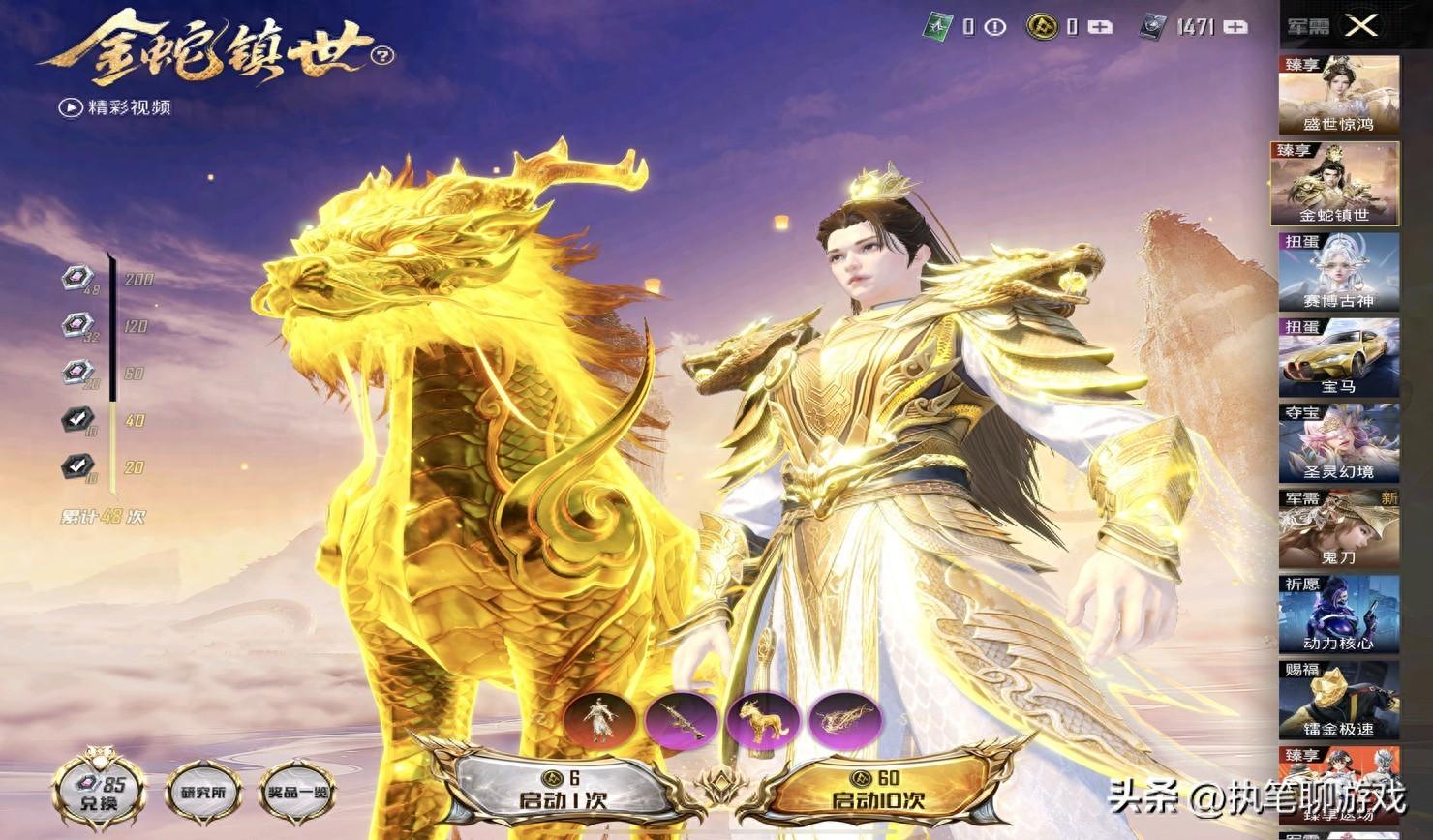 首先說金蛇鎮世,一共挑戰抽獎48次而已,但是已經拿下了“四粉”,9級ScarL、大金馬、飛行器、降落傘,雖然沒有獲得紅裝,但這麼少的抽獎次數能夠有如此收穫,就已經讓人相當羨慕了。
