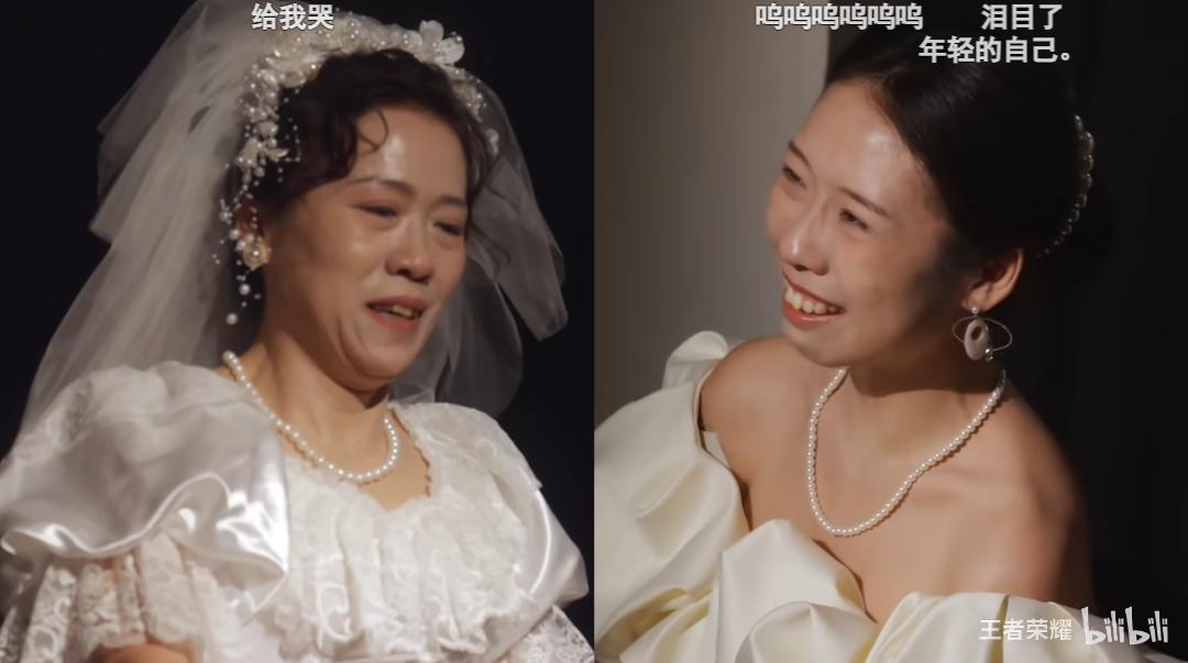 與此同時,媽媽這邊也準備了一份心意。九兒媽媽在結婚的時候,因爲經濟條件問題,並沒有拍正式的婚紗照,她得知女兒希望媽媽能補上這個遺憾,就在女兒準備新COS的時候,換上了攝影棚裏的婚紗。