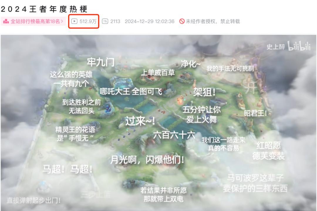 B站上的“2024王者年度熱梗”視頻,播放量超過500萬